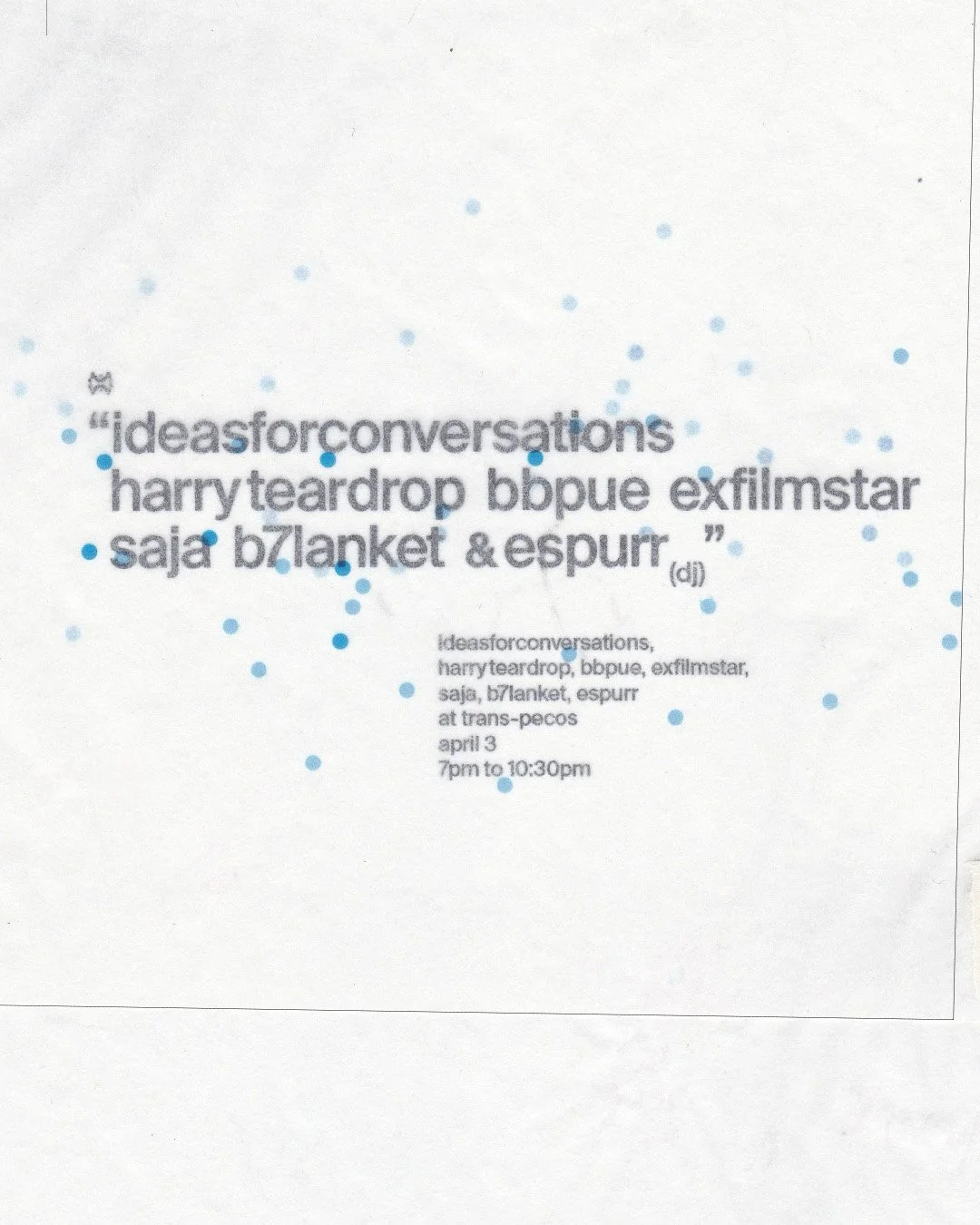 ideasforconversations, harry teardrop, bbpue, exfilmstar, saja, b7lanket, espurr